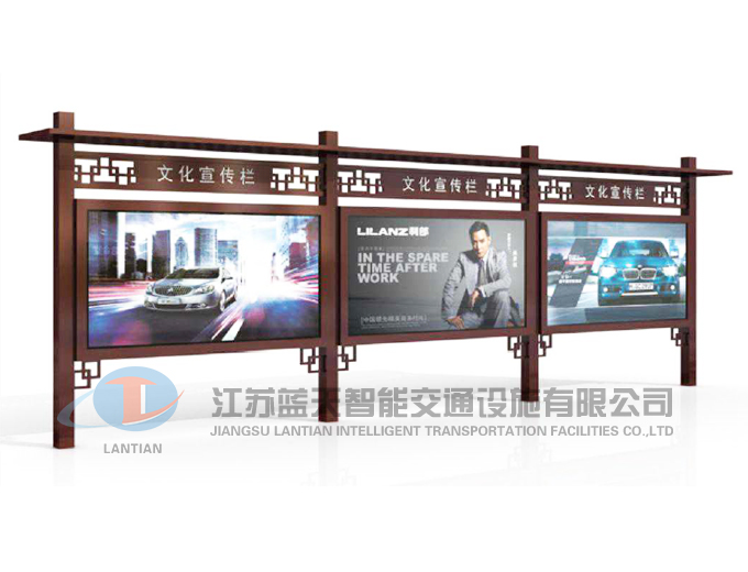 是一家生產(chǎn)宣傳欄,候車亭,公交站臺(tái),閱報(bào)欄,指路牌,廣告垃圾箱,滾動(dòng)換畫燈箱等系列產(chǎn)品廠家!產(chǎn)品多達(dá)上百種,亦可根據(jù)客戶的需求加工制作各種型號、規(guī)格的產(chǎn)品。目前已經(jīng)成功的向市場推出裝備有太陽能的各類產(chǎn)品,緊跟國家倡導(dǎo)“節(jié)能低碳”的環(huán)保政策。